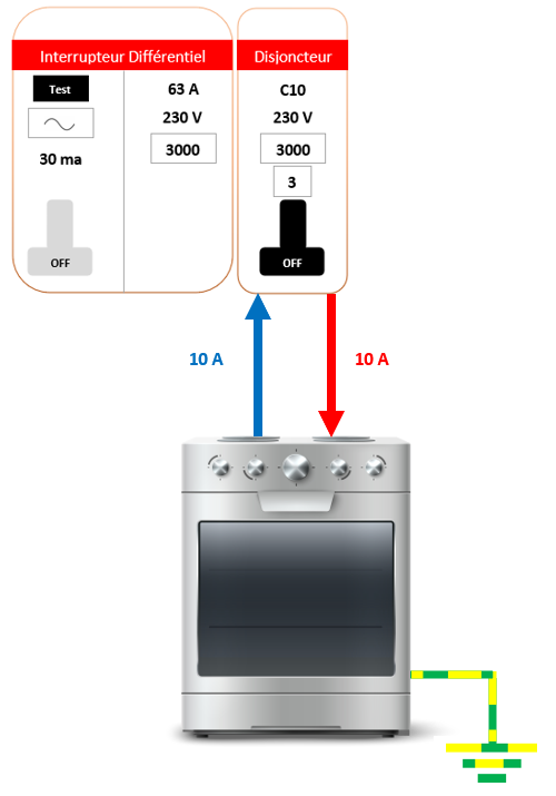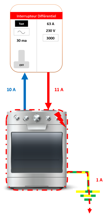 Lorsqu’un défaut d’isolement apparait à l’intérieur de l’appareil, il y a une fuite à la terre et la quantité d’ampères qui arrive vers l’appareil est différente de la quantité d’ampères qui retourne. Une fuite à la terre comme une fuite d’eau engendre une surconsommation d’électricité.