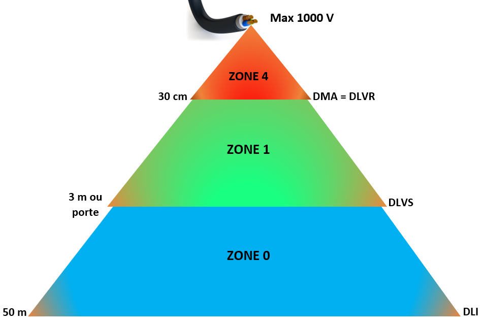 Dès qu’il y a un risque électrique, on définit des zones de sécurité autour du risque.