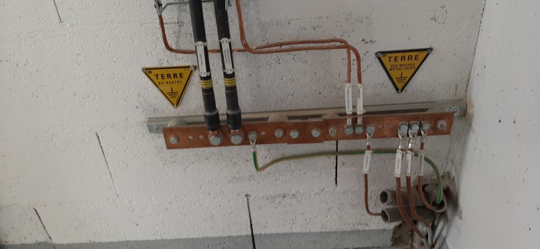 A gauche : la terre du neutre du transformateur