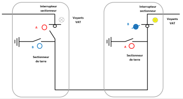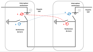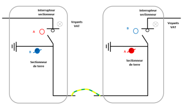 A cause de la longueur des câbles d'une boucle, malgré la consignation de chaque extrémité de la boucle, il peut subsister des tensions dangereuses. Pour cela des VAT sont