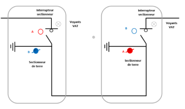 Au niveau de chaque cellule il y a un verrouillage entre l'interrupteur sectionneur et le section de terre, empêchant la fermeture du sectionneur de terre lorsque l'interrupteur sectionneur d'alimentation est encore fermé.