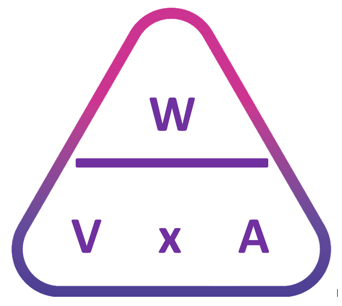 La puissance en Watt (W), la tension en Volt(V) et l’intensité en Ampère (A) sont liés par une relation mathématique. Pour comprendre cette relation, on dispose ces éléments dans un triangle.